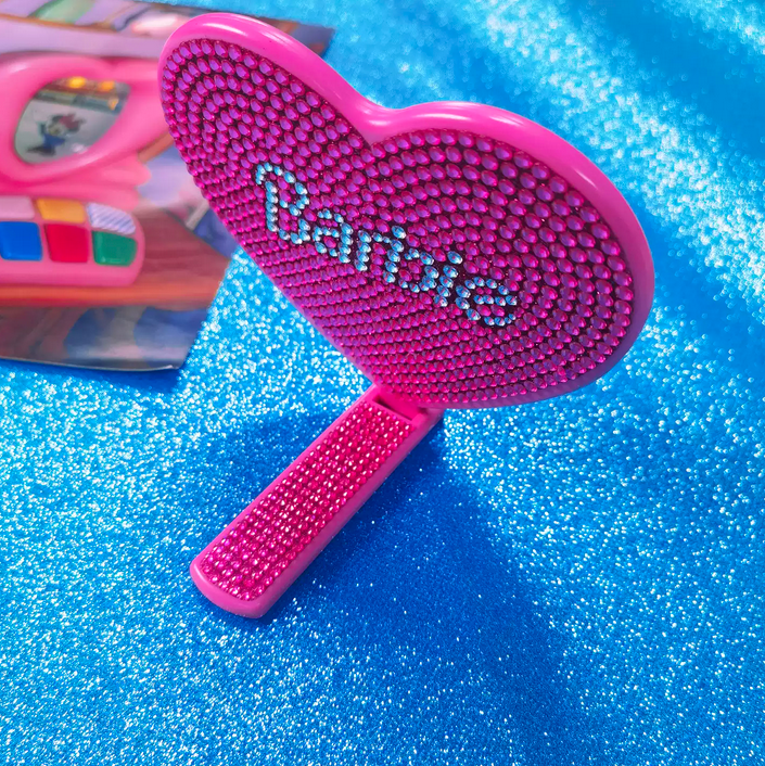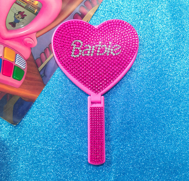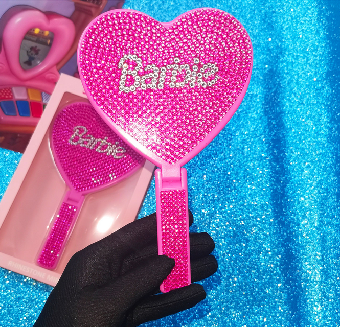 Heart Rhinestone Crystal Bling Portable Hand Mirror