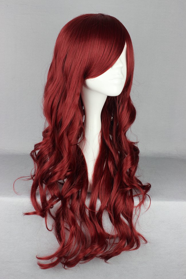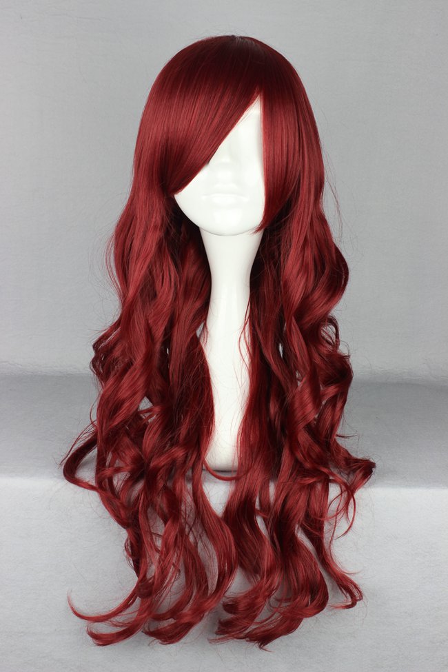 Dark Red Long Curly Wig Beautiful Anime Wig Costume Cosplay Wig Auburn Long Wavy Heat Resistant Synthetic Hair Wigs
