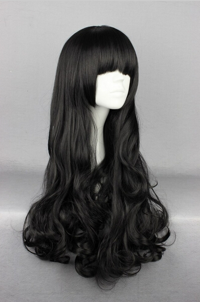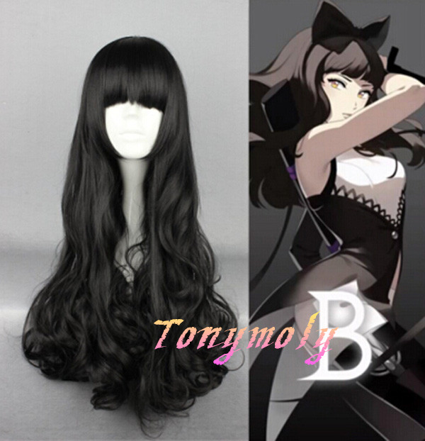 Black Long Curly Wig RWBY Costume Blake Wig Anime Cosplay Wig for Party Synthetic Hair Straight cross bangs Wigs