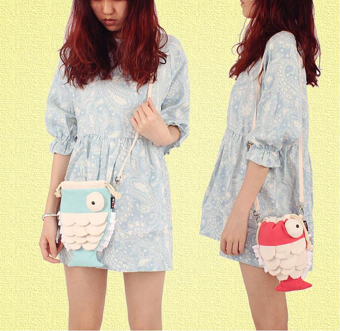 Fish Bags Canvas Cotton Messenger Debris Bag, Red Blue Yellow