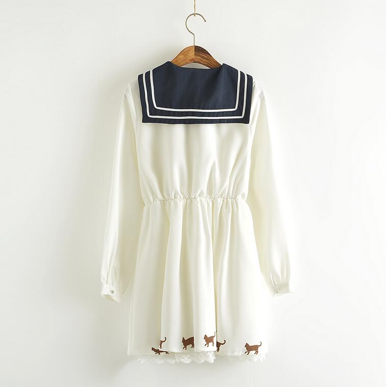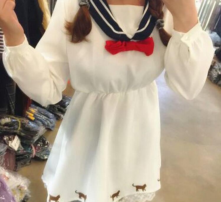Free Ship Sailor Navy Lapel High Waist School Unifrom Maid Dress with Bowtie