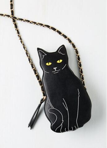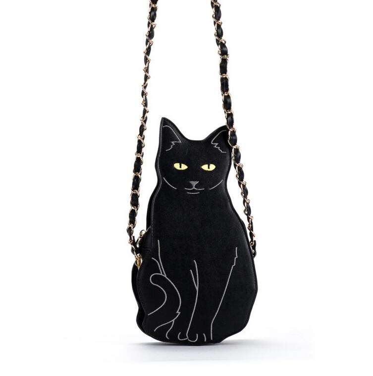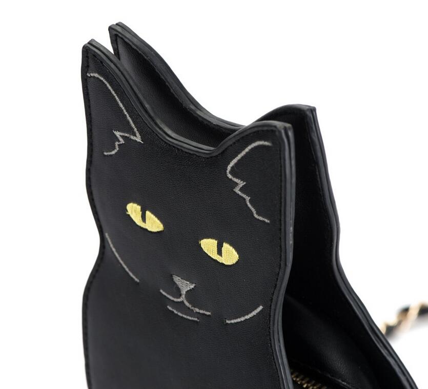 Vintage Cute Black Cat Bag Gold Chain Shoulder Bag
