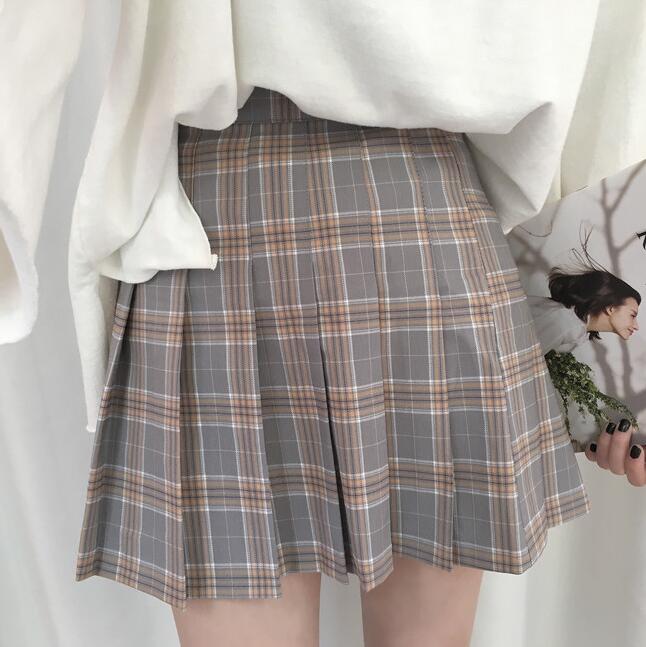 Chic Style Korean College Checkered Plaids Pleated Skirt Student Skirt
