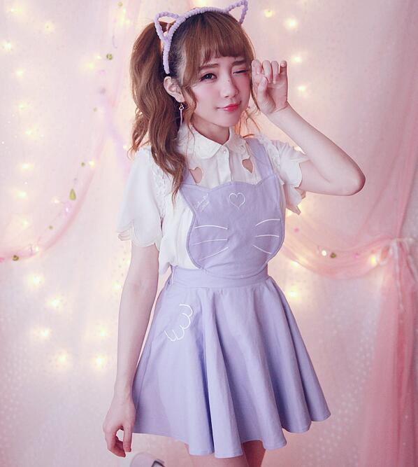 Material: Cotton, Polyester; Color: White, Purple, Black; Size: S, M (S): Waist 62-78cm; Length 72-78cm(with suspenders) (M): Waist 66-82cm, Length 75-81cm(with suspenders); (1inch=2.54cm).