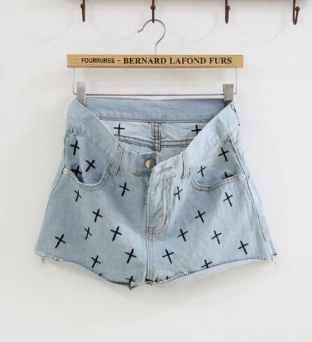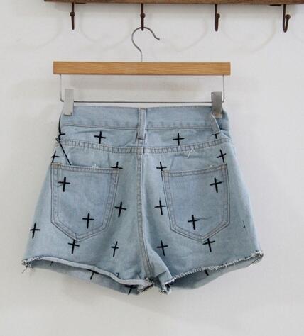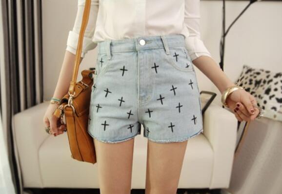 Material: Denim; Size: S, M, L (S): Waist-68cm, Length-30cm, Hip-87cm, Thigh-54cm; (M): Waist-72cm, Length-31cm, Hip-92cm, Thigh-56cm; (L): Waist-76cm, Length-32cm, Hip-96cm, Thigh; (1inch=2.54cm).