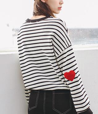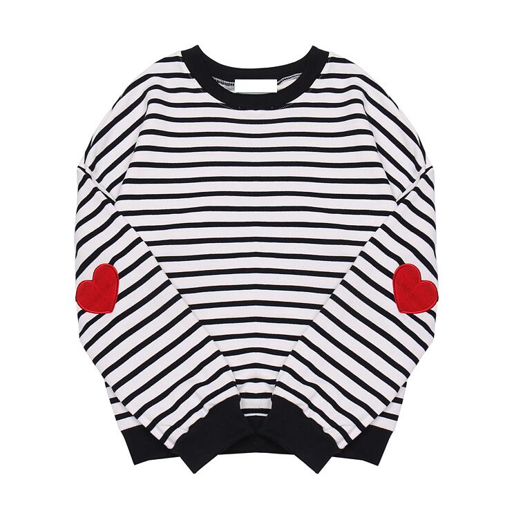 Harajuku Striped Heart Long Sleeve Sweatshirt