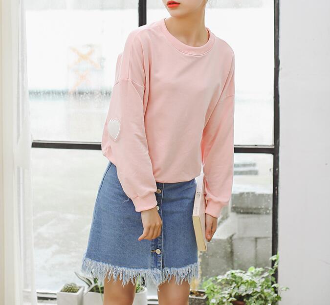 Material: Cotton Blend; Color: White, Pink, Grey, Dark Blue; Size: one size Length-57cm, Bust-112cm, Sleeve-45cm, Shoulder-62cm; (2.54cm=1inch)