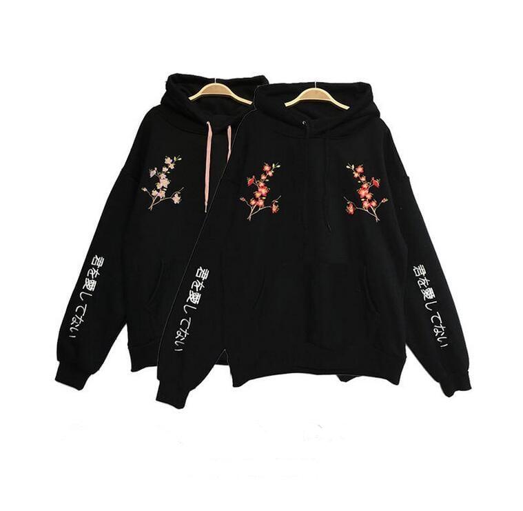 Plum Blossom Embroidered Hoodie