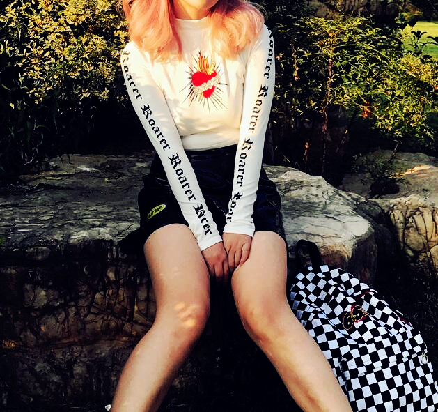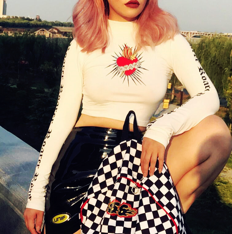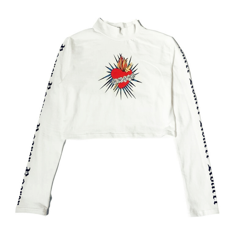 Cyber Punk Heart Rose Printed Long Sleeve Cropped Shirt