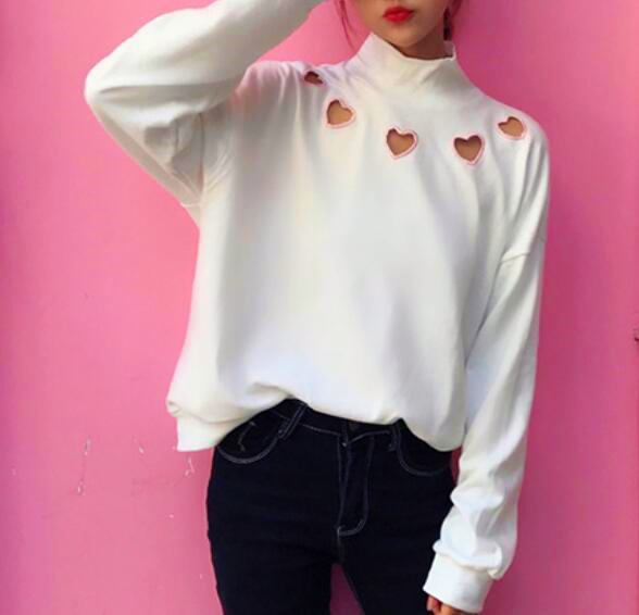 FREE SHIPPING Sweet Hollow Out Heart Sweatshirt