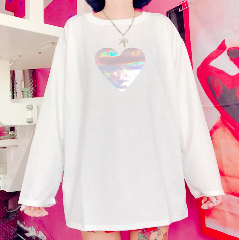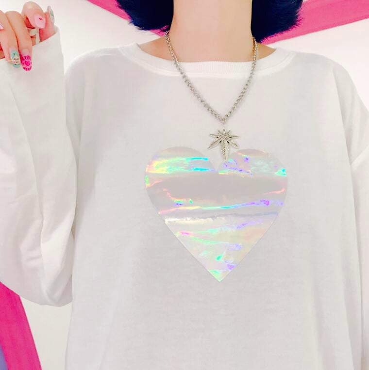Harajuku Holographic Heart Long Sleeve T-shirt
