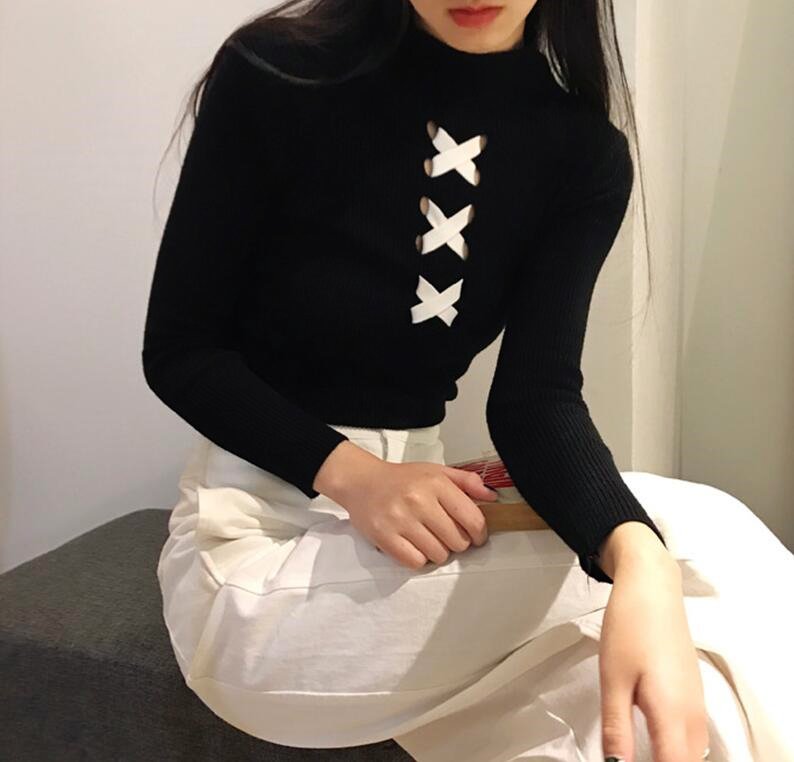 Cross Strap HIgh Collar Knitted Top