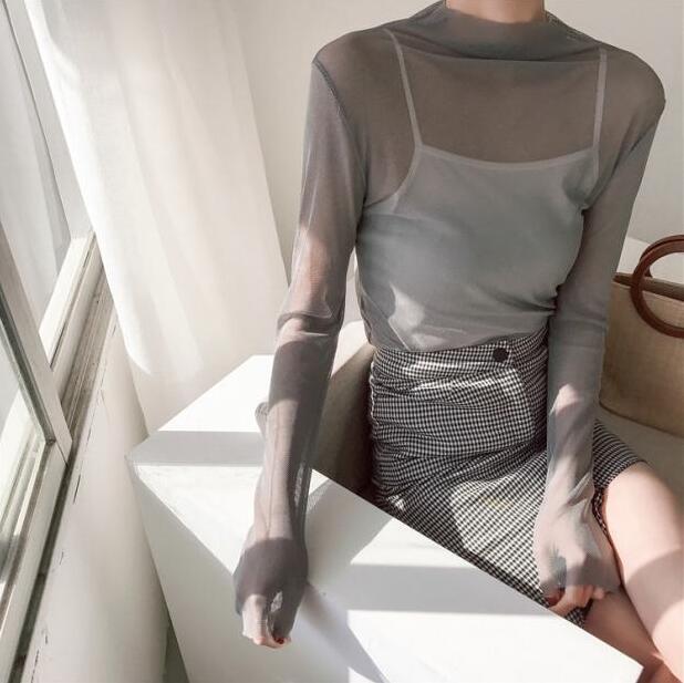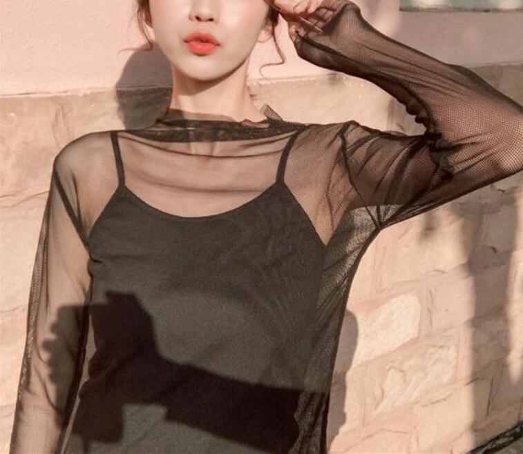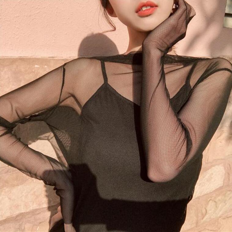 See-through Mesh Lace Long Sleeve Top