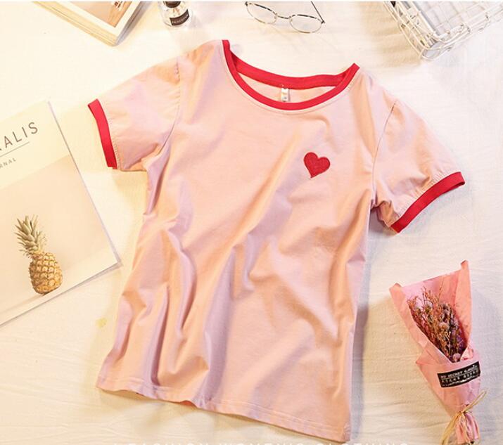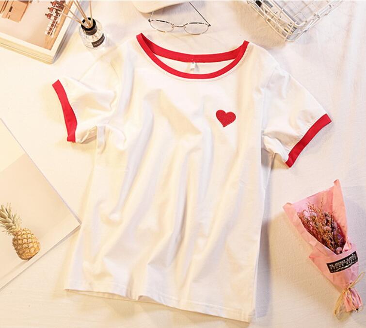 Sweet Red Heart Embroidery Tee