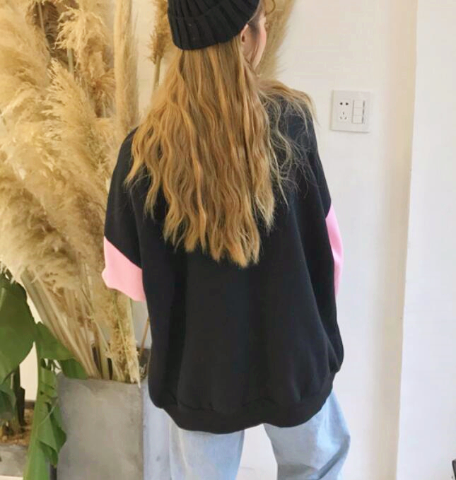 Material: Cotton, Polyester; Color: Black&Pink; Size: one size Length-67cm, Bust-120cm, Shoulder-60cm, Sleeve-80cm; (2.54cm=1inch).