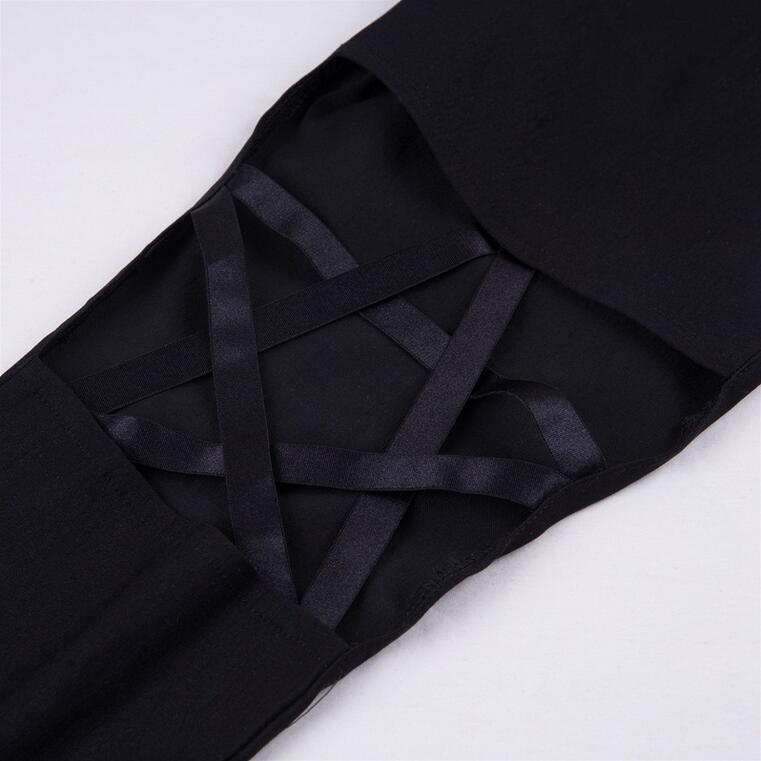 Cyber Punk Hollow Out Star Zip Up Black Skinny Pants