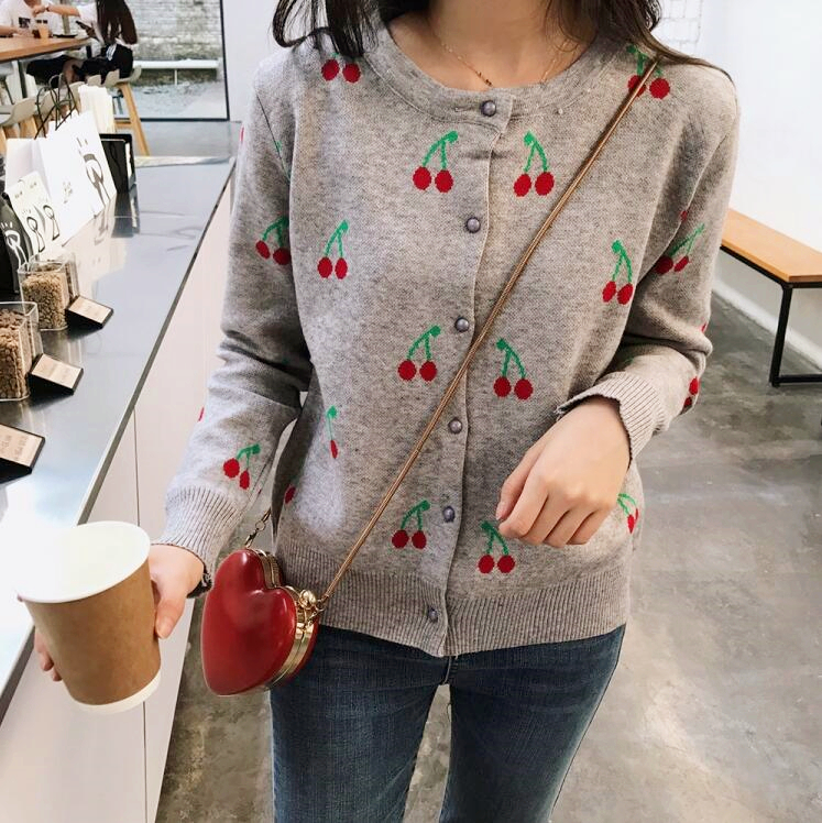 Sweet Cherry Detachable Collar Sweater Knit Cardigan