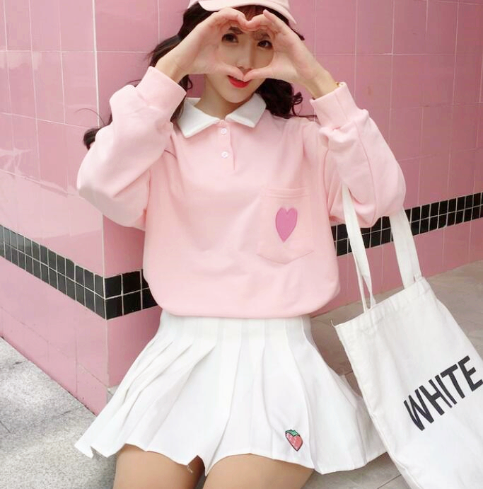 Love Heart Embroidery Long Sleeve Polo Shirt
