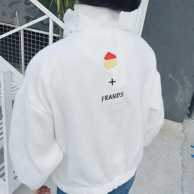 FRANDS Embroidery High Collar Pocket Sweatshirt