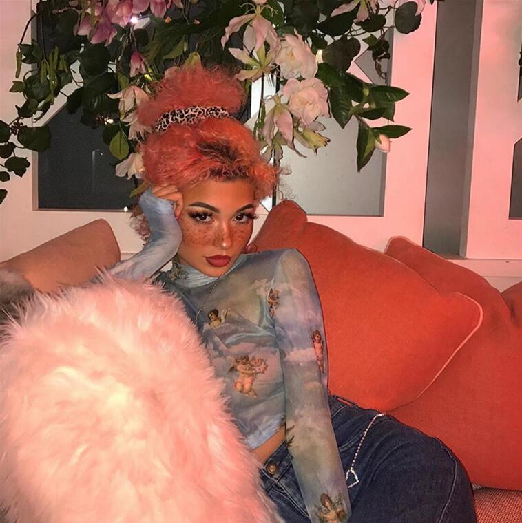 High Collar See-Through Little Angle Printed Mesh Top