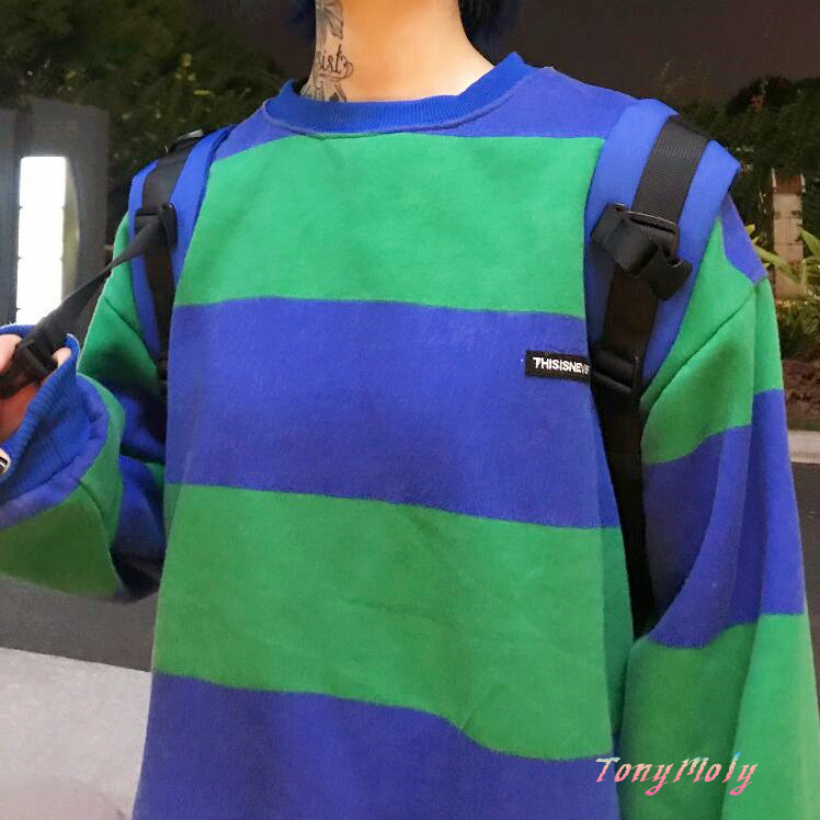 Vintage Blue Green Stripe Fleece Sweatshirt