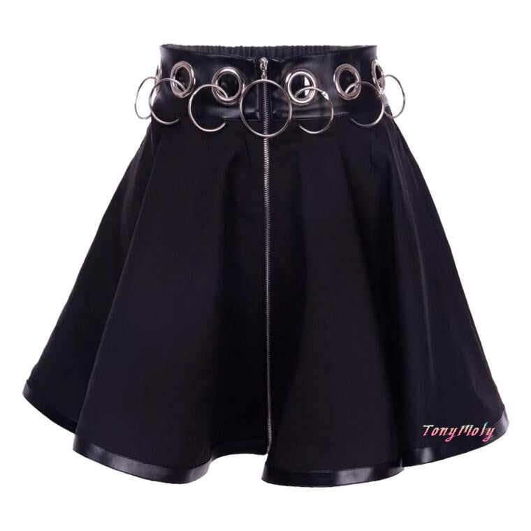 Cyber Punk Round Ring Zip up Black A-line Skirt