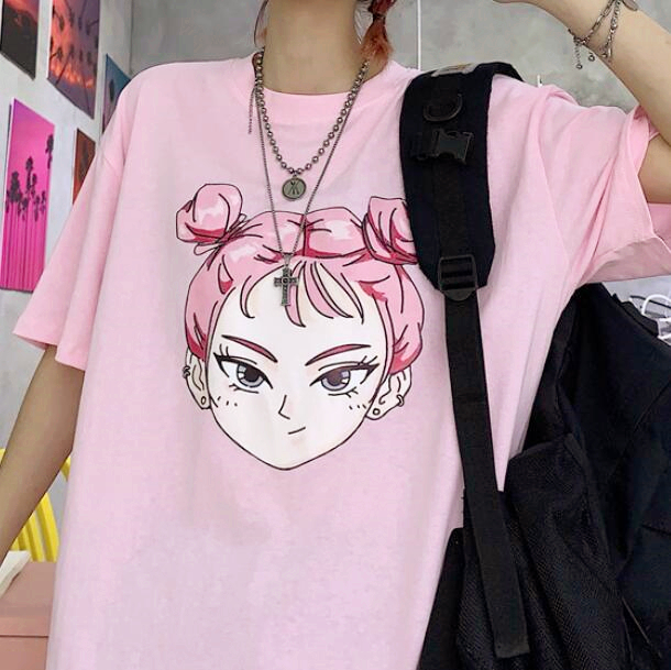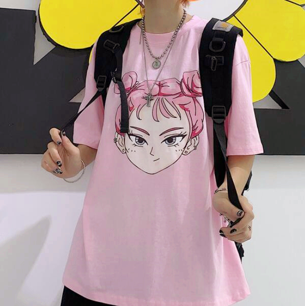Anime Girl Pastel Pink Tee