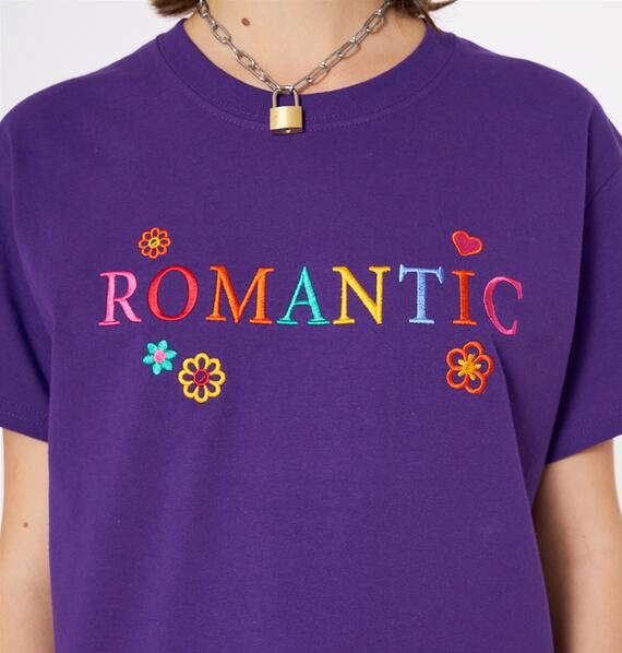 ROMANTIC Flowers Heart Embroidery Purple Tee