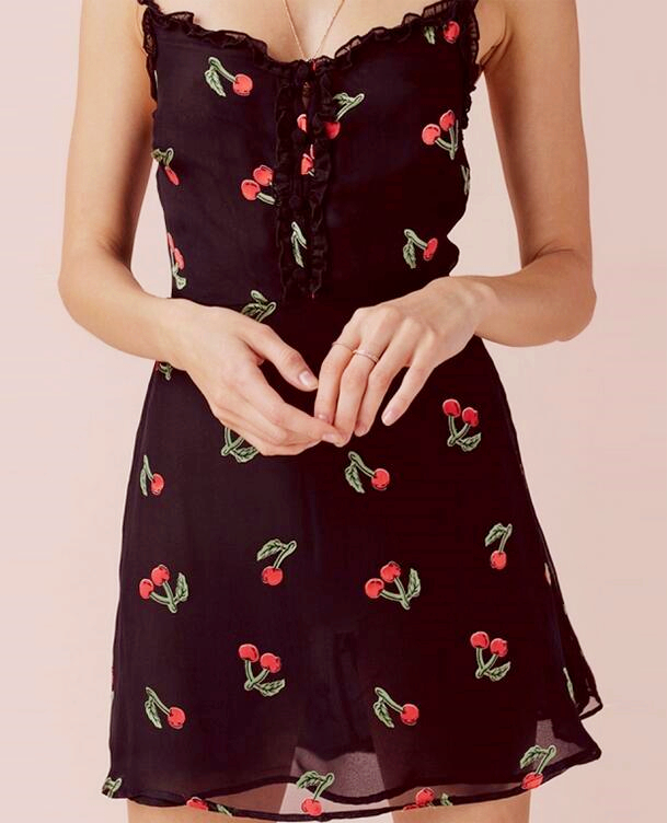 Cherry V-neck Sleeveless Flounce Lace Dress