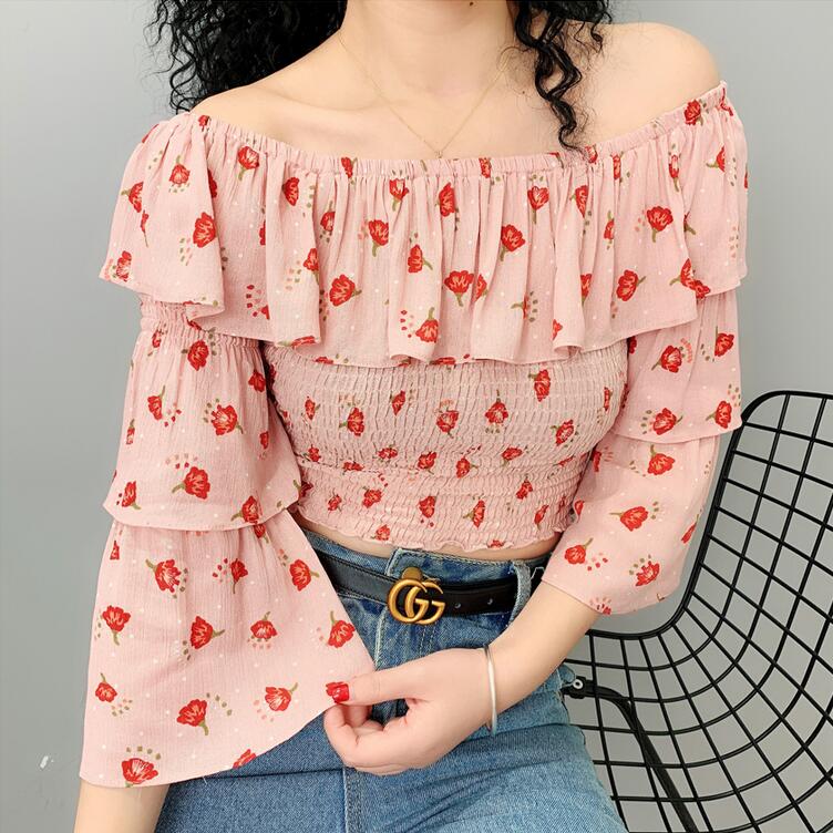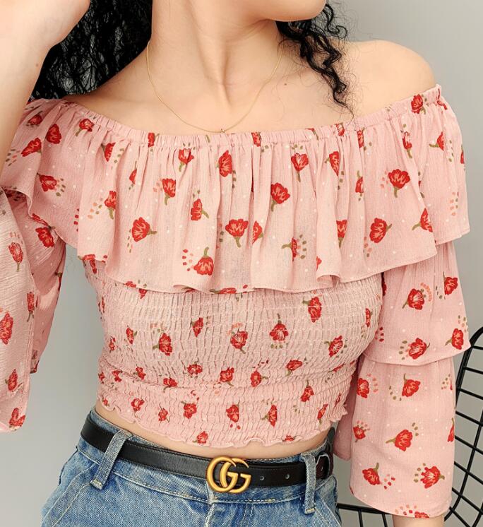 Vintage Off Shoulder Floral Flower Printed Flounce Top