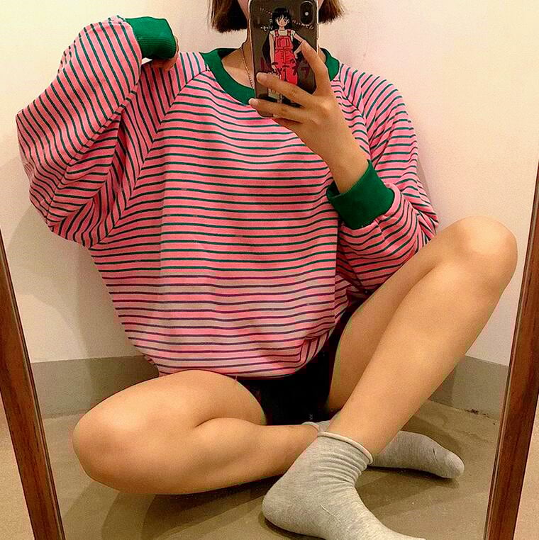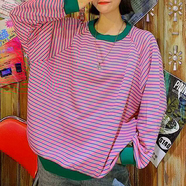 ✡Color: pink&green; ✡Size: M/L/XL (M): Length-62cm, Bust-108cm, Sleeve-67cm; (L): Length-64cm, Bust-112cm, Sleeve-68.5cm; (XL): Length-66cm, Bust-116cm, Sleeve-70cm; (2.54cm=1inch).
