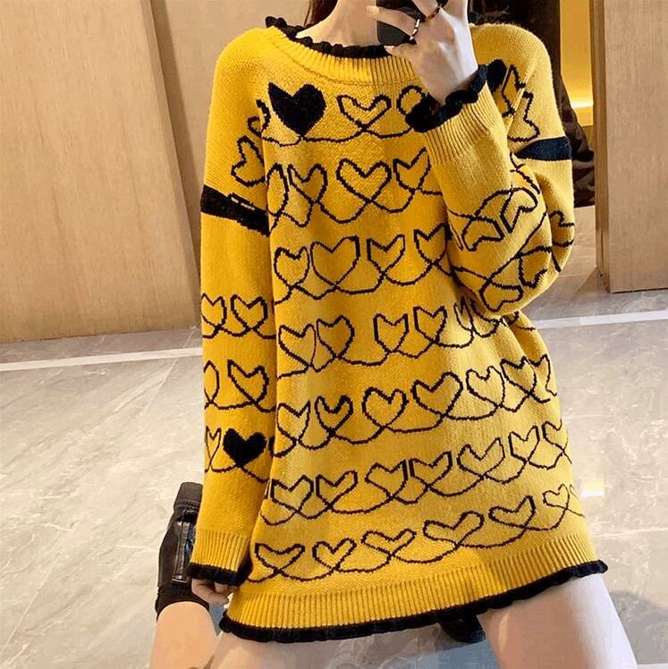 Harajuku Heart Long Yellow Sweater