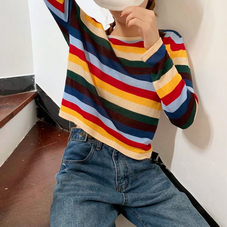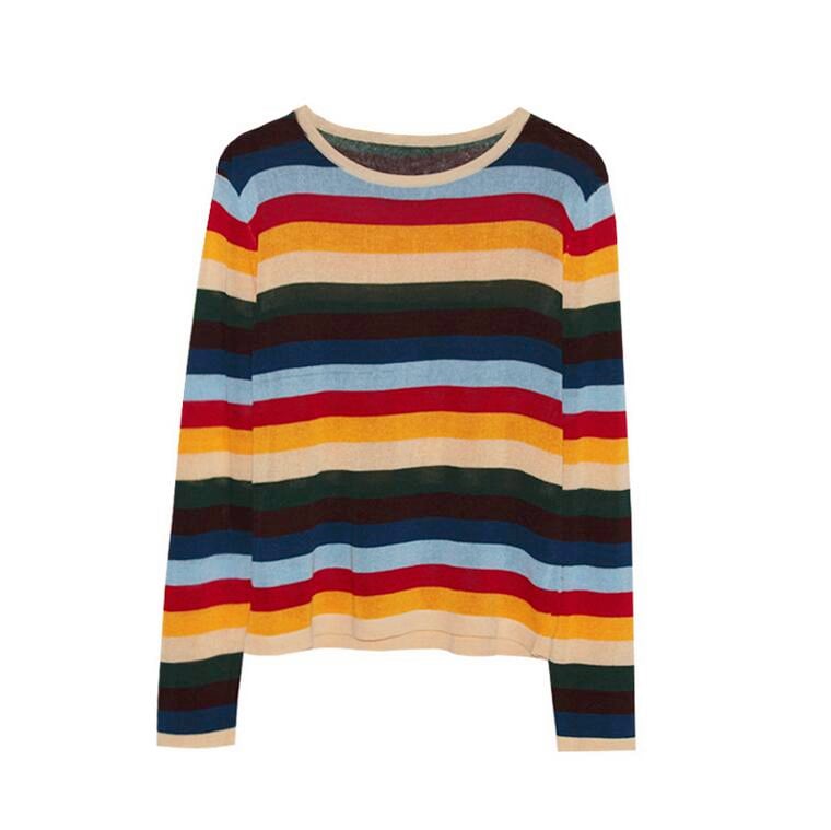 Rainbow Stripe Color Block Long Sleeve Knit Sweater