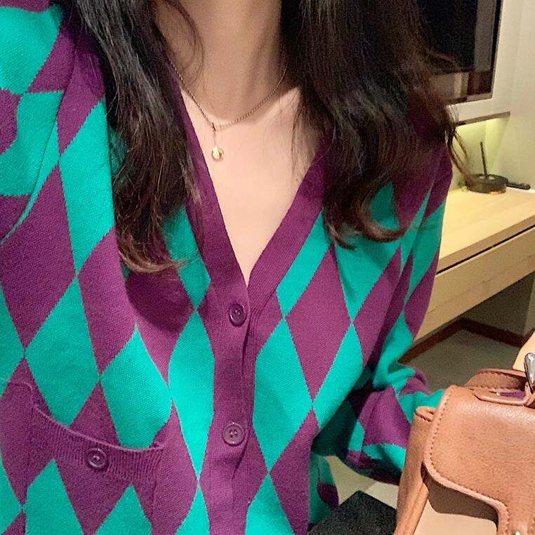 Diamond Color Block Knit Cardigan