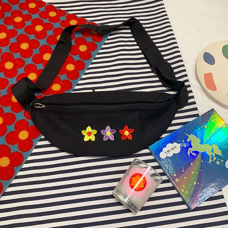 Colorful Flower Embroidered Canvas Bag Fanny Pack