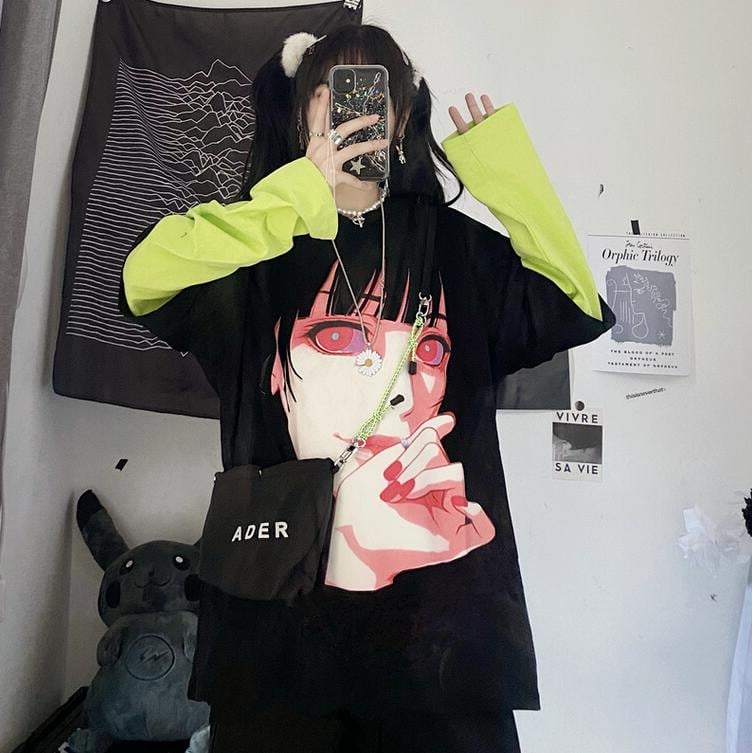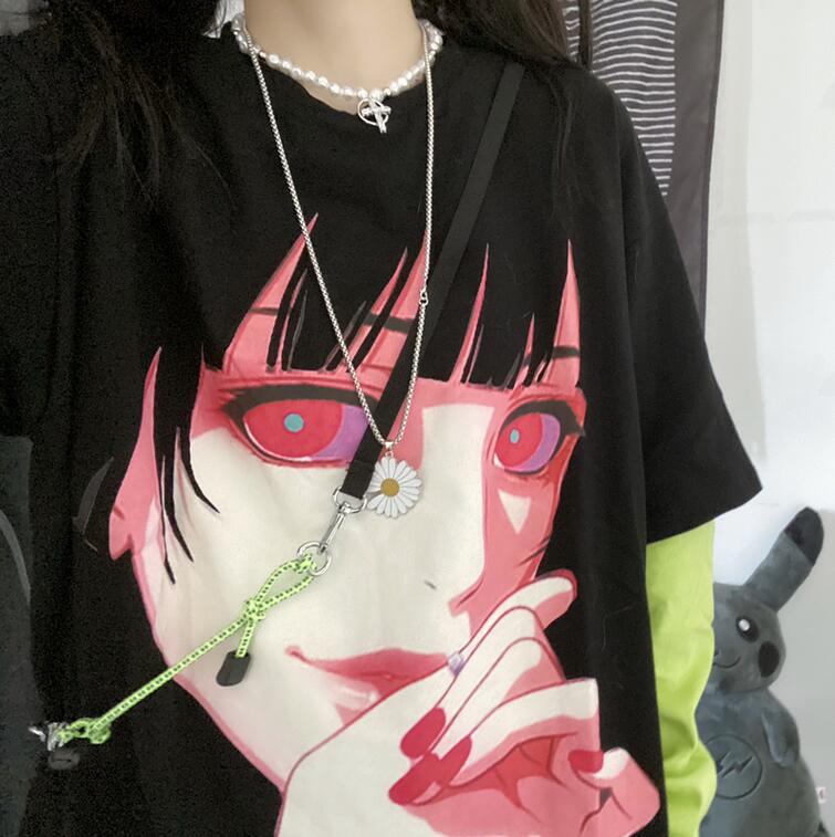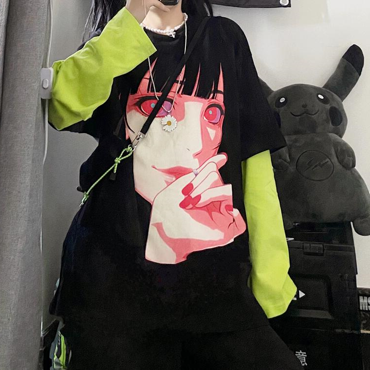 Harajuku Girl Fake Two Pieces Black T-shirt