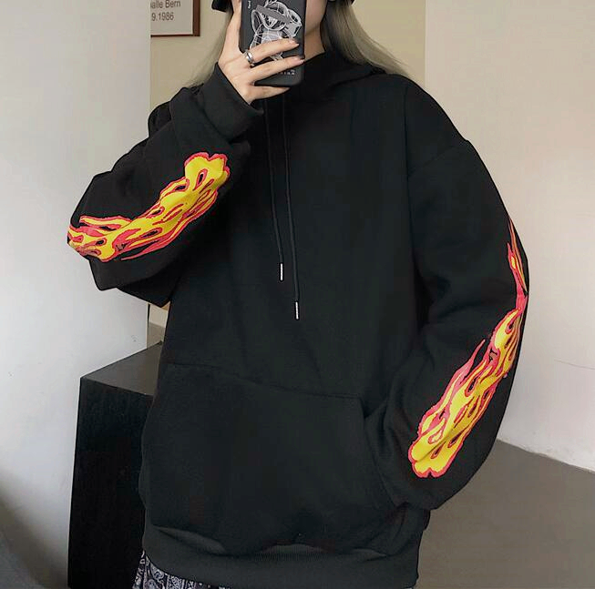 Fire Flame Print Hoodie Sweatshirt