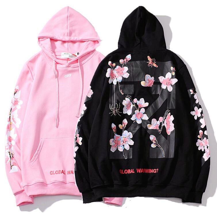 Cherry Blossom Flower Bee Print Hoodie Sweatshirt