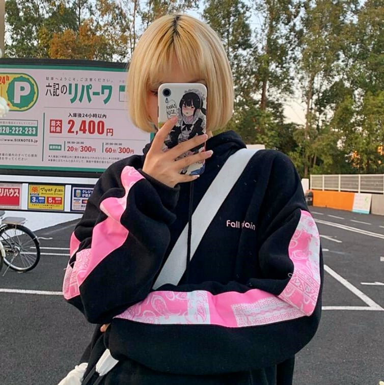 Bandana Pink Color Block Black Hoodie Sweatshirt