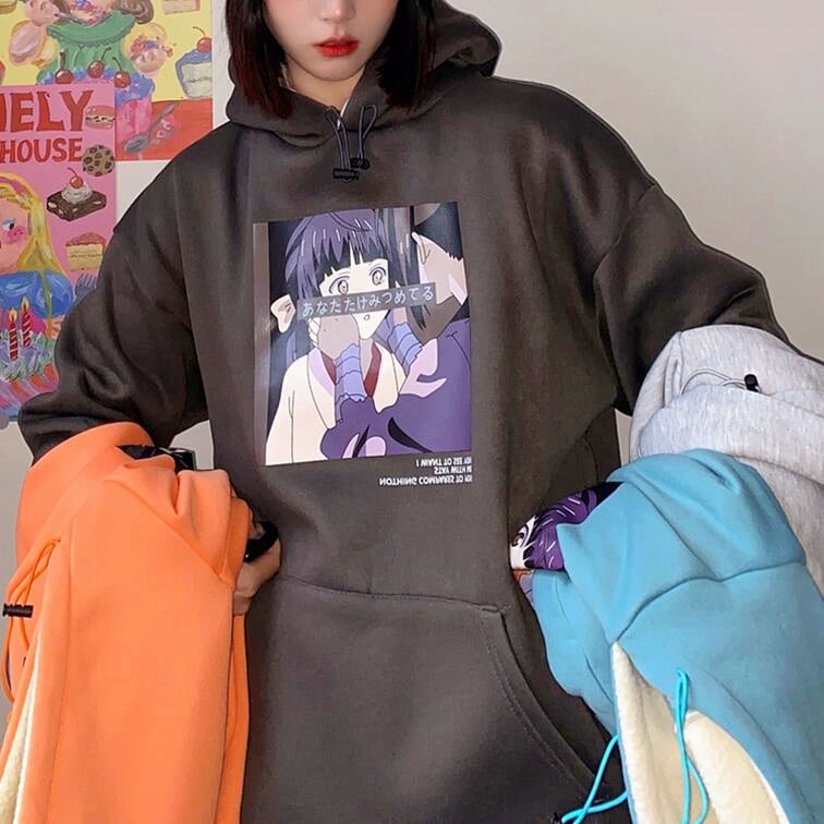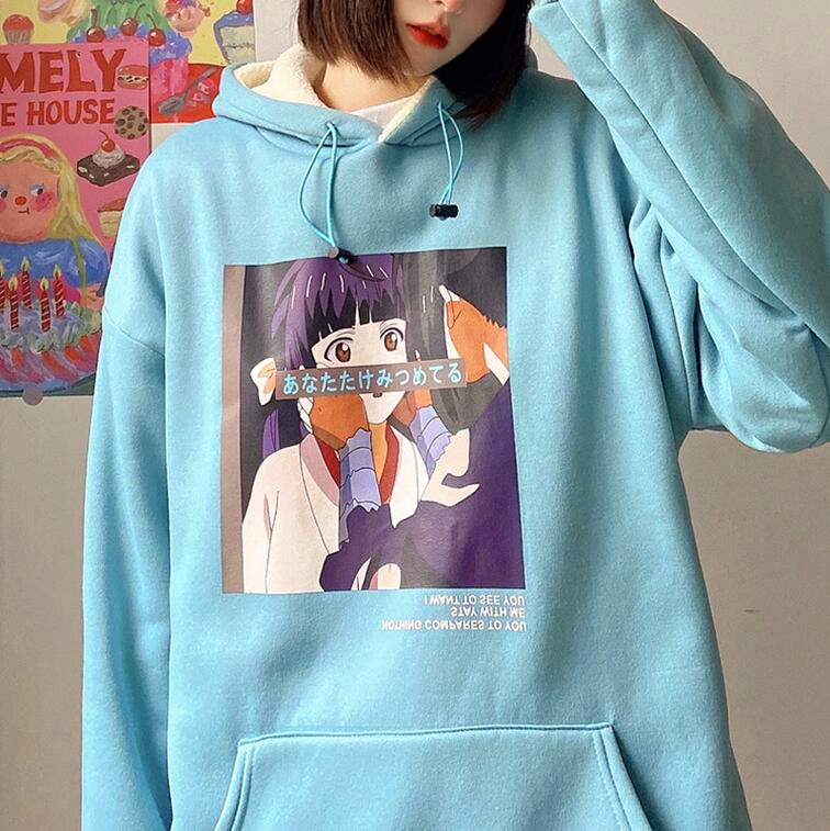 I WANT TO SEE YOU Anime Girl Printed Hoodie Sweatshirt