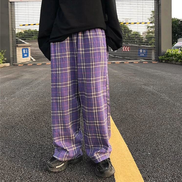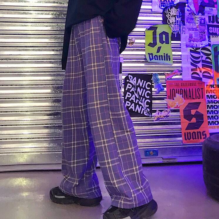 Vintage High Waist Plaid Checker Loose Wide Leg Trousers Pants