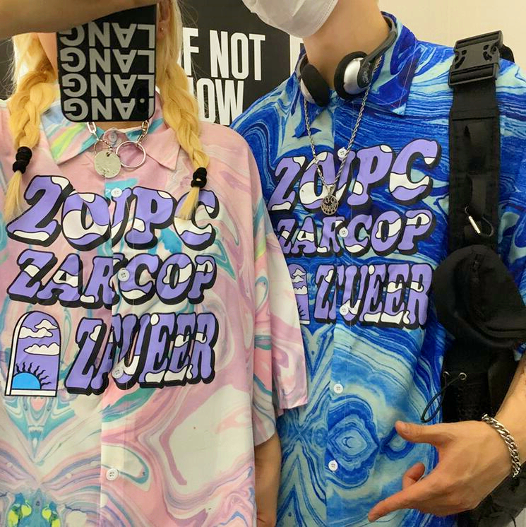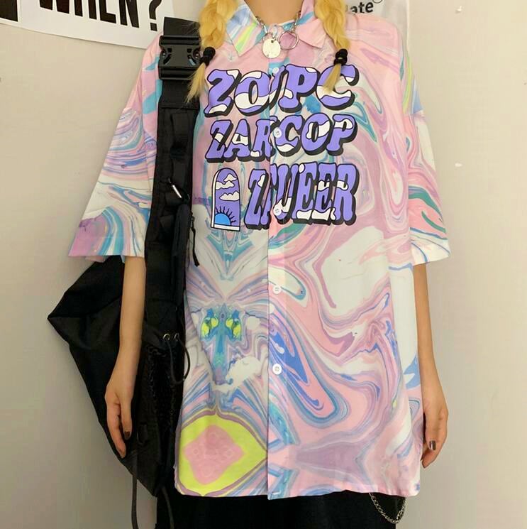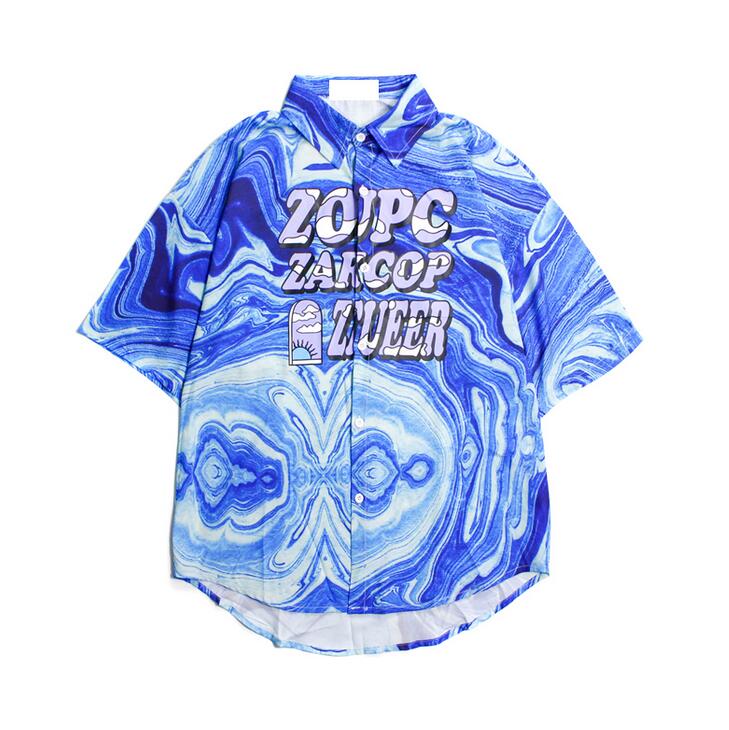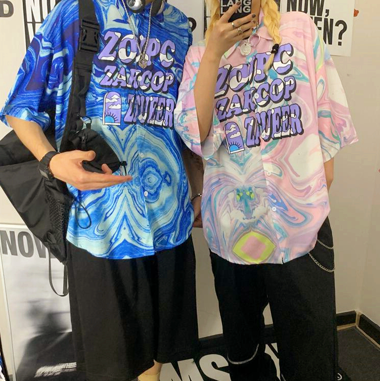 Tie-dyed Painting Color Block Short Sleeve Shirt
