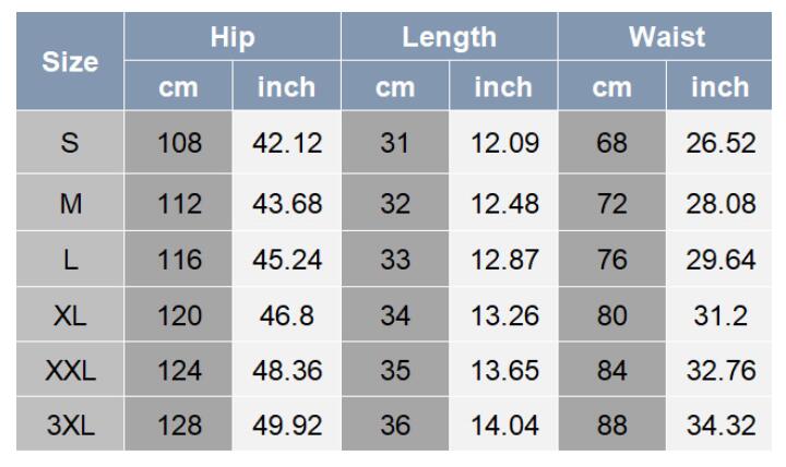 (3XL): Length-36cm, Waist-88cm, Hip-128cm;
