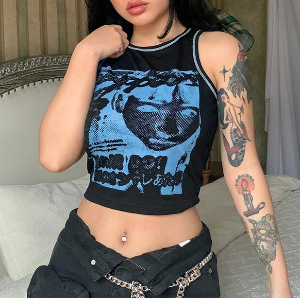 Goth Face Print Sleeveless Vest