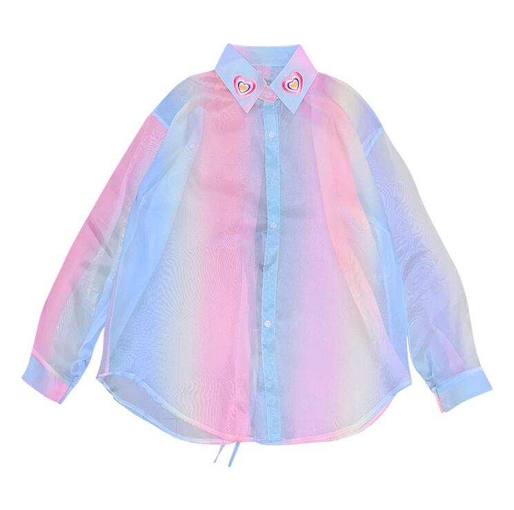 Heart Embroidery Colorful Gradient See-through Blouse Jacket