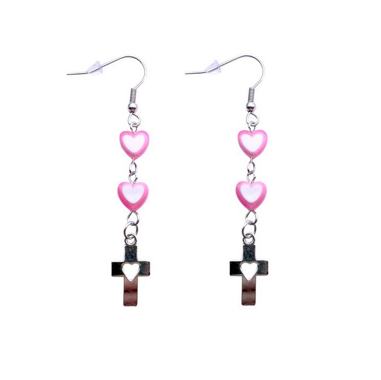 Y2K Pink Heart Hollow out Cross Earrings