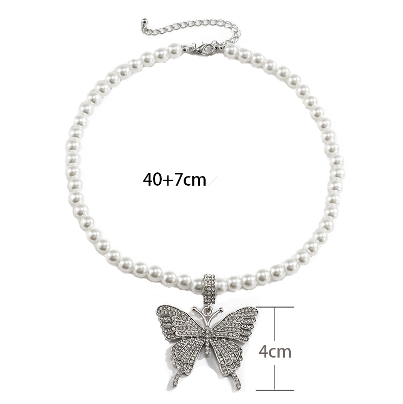 Crystal Butterfly Pendant Pearl Necklace Choker