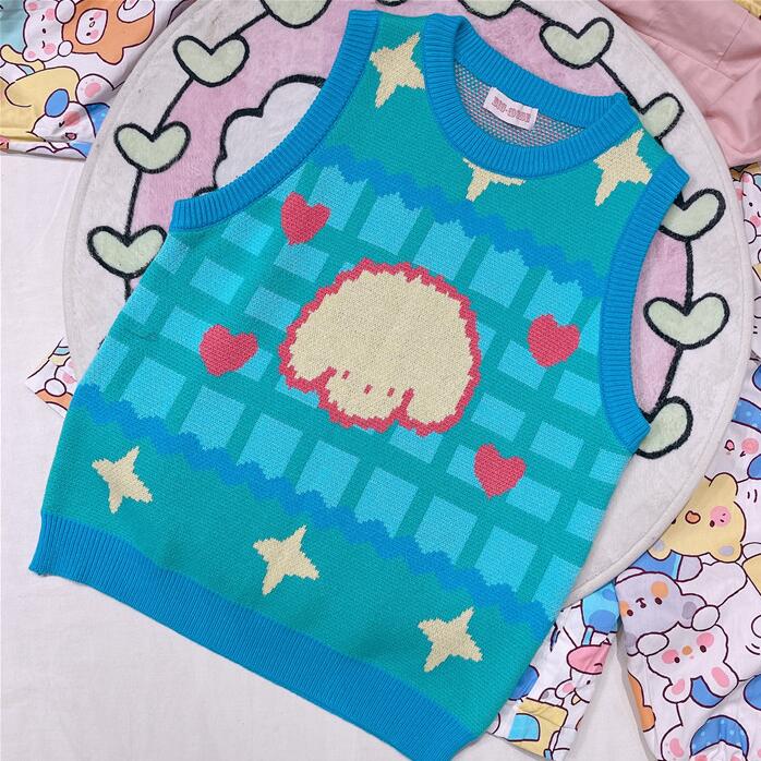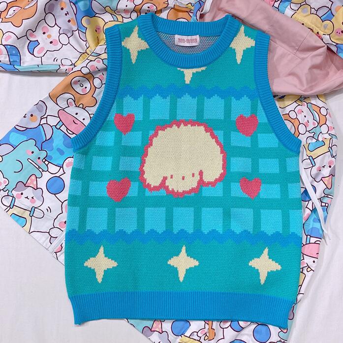 Cute Puppy Dog Star Heart Sleeveless Knitted Vest Tank Top