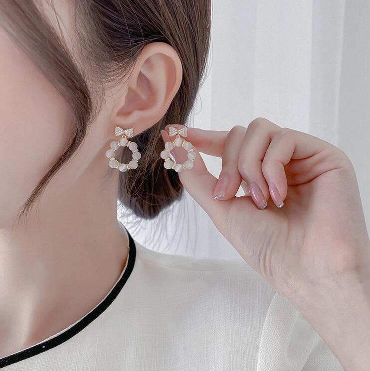 Crystal Bow Round Hoop Dangle Drop Earrings