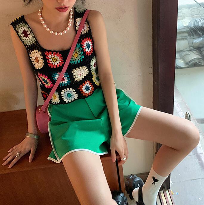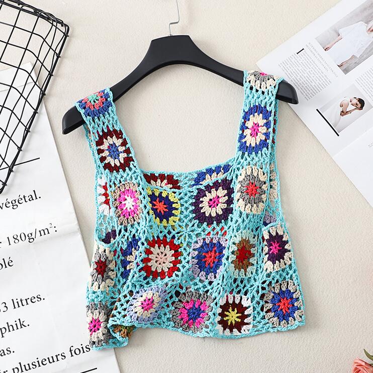 Colorful Flower Crochet Sleeveless Knitted Vest Tank Top